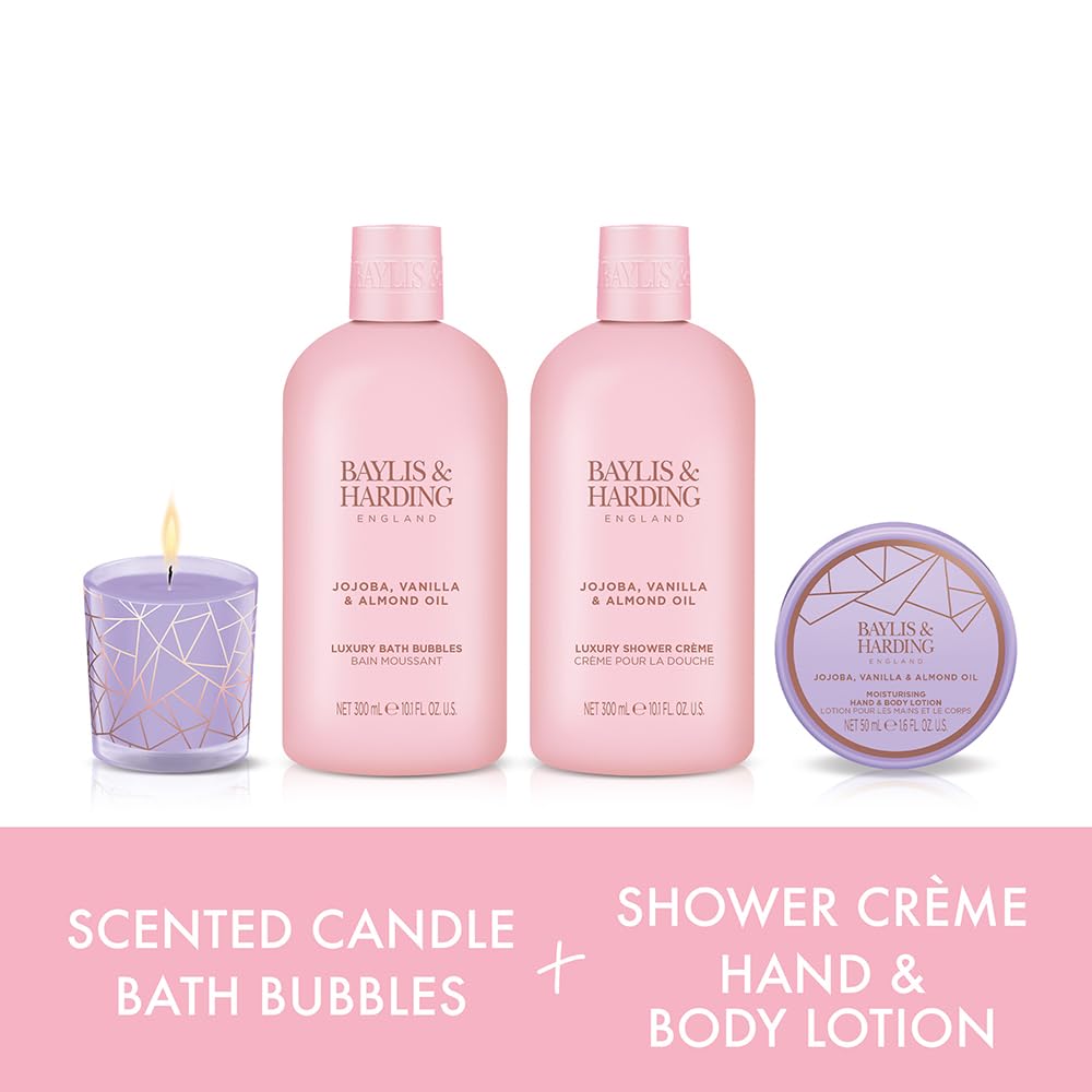 Baylis & Harding Jojoba, Vanilla & Almond Oil Luxury Candlelit Bathing Gift Set (Pack of 1) – Vegan Friendly